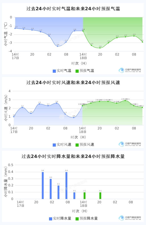 预计贵州省贵阳市未来24小时(18日13时~19日12时)有雨夹雪和冻雨,最低气温-3.6℃,平均气温-2.7℃,累积降水量0.2mm,平均风速2.6m/s,风向北偏东。