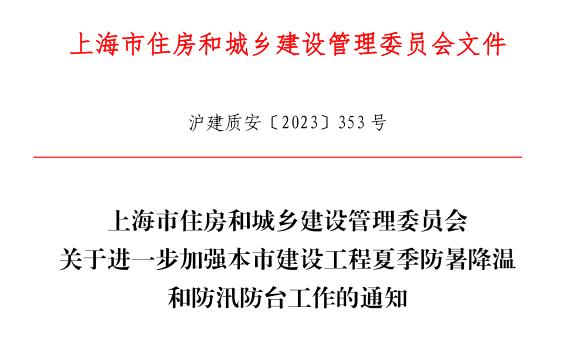 为深入贯彻落实习近平总书记关于防汛救灾工作的重要指示精神,按照市委、市政府有关工作部署,市住房城乡建设管理委现就加强本市建设工程夏季防暑降温和防汛防台工作通知如下↓
