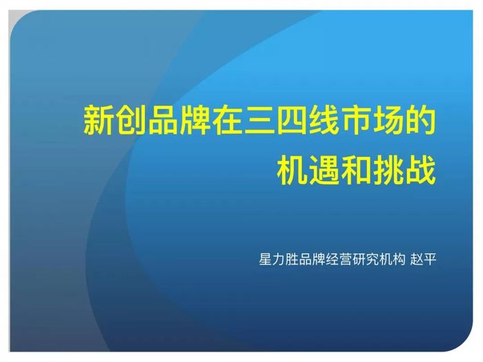 分享主题:新创品牌在三四线市场的机遇和挑战