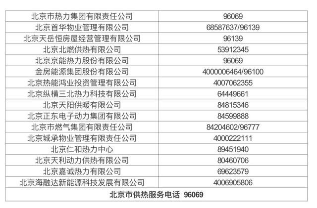 市、区城市管理部门将组织供热单位做好用户服务,加强入楼入户巡检,及时响应用户诉求。全市供热服务电话“96069”和微信公众服务号“北京热力客户服务”,将24小时提供服务。