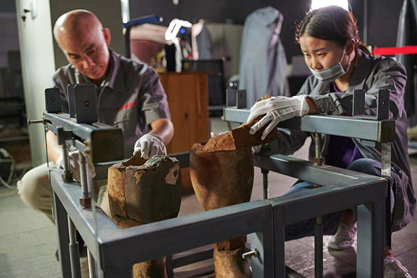 从业27年,马宇和团队成员一起修复了200余件文物,其中不乏一些国宝级文物,包括秦始皇帝陵的第一件戟、第一件石铠甲、第一件水禽。他说,每一件文物都是不可再生的文化资源,是有生命的,他甚至能够通过文物的修复,实现与古代工匠们的“对话”,“因此,对待文物必须时刻保持一颗敬畏之心,这是我从进入文物修复师这个行业一直保持的初心。”