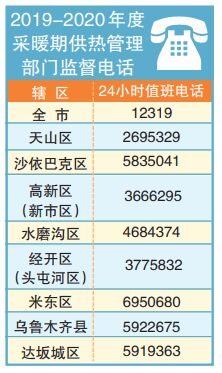 9月23日,乌鲁木齐市供热行业管理办公室公布了2019-2020年度采暖期37家大型供热企业24小时服务热线及供热管理部门服务热线。在采暖期间,市民如遇供热问题,可第一时间拨打辖区供热企业电话。