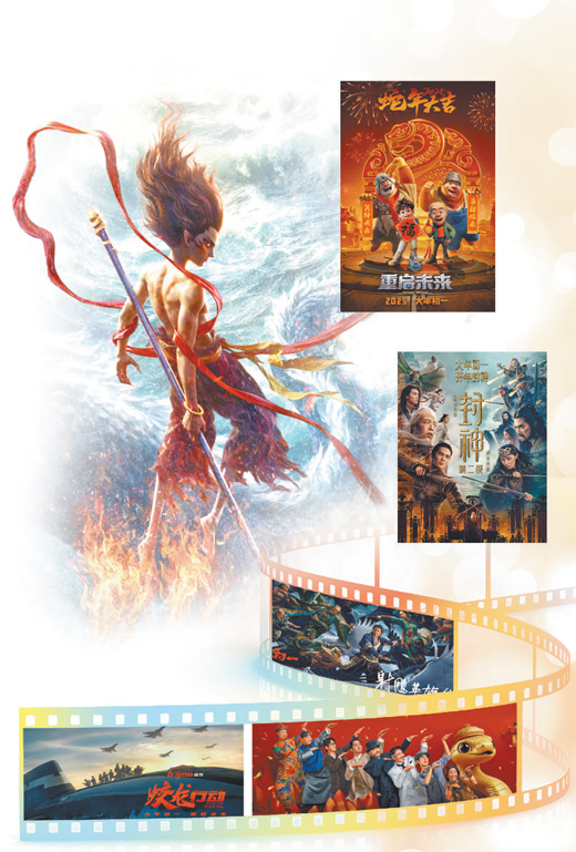 今年春节档影片题材多元、类型丰富、市场关注度高。《封神第二部:战火西岐》续写前作暗线伏笔,展现人物的成长轨迹和战争场面;《哪吒之魔童闹海》讲述哪吒闹海故事,延续“超级喜剧、超燃视效”风格;《唐探1900》保留类型风格的同时,在内容创新和制作规模上升级;《蛟龙行动》作为我国第一部核潜艇电影,在水下呈现广阔战场与复杂战况;《熊出没·重启未来》是《熊出没》科幻五部曲的最终章,用“极致的浪漫、大胆的想象”呈现一场冒险;《射雕英雄传:侠之大者》改编自金庸经典武侠小说,呈现了“侠之大者,为国为民”。