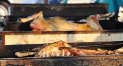 不知不觉就到了晚上,到了饭点了,该犒劳犒劳累了一天的身体。这里烤全羊很好吃,光是看样子就让人流口水了。羊肉挺贵的,我们一家四口也没有胃口吃得下那么一大个羊,只点了一个小羊腿。臊子面味道也不错,让人吃的满嘴都是油。