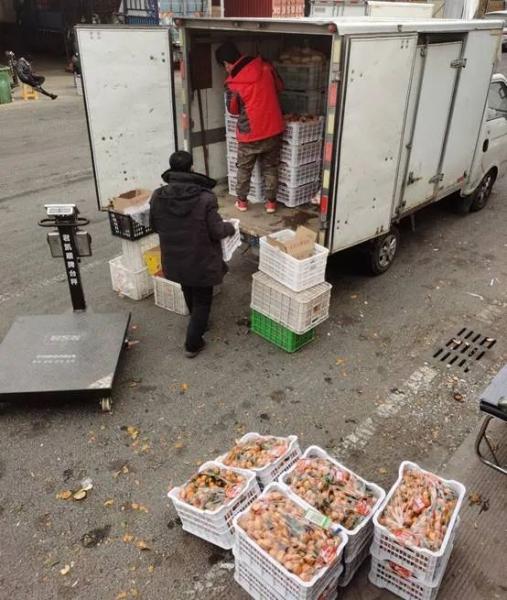 ▲赵满堂在水果批发区储备货源