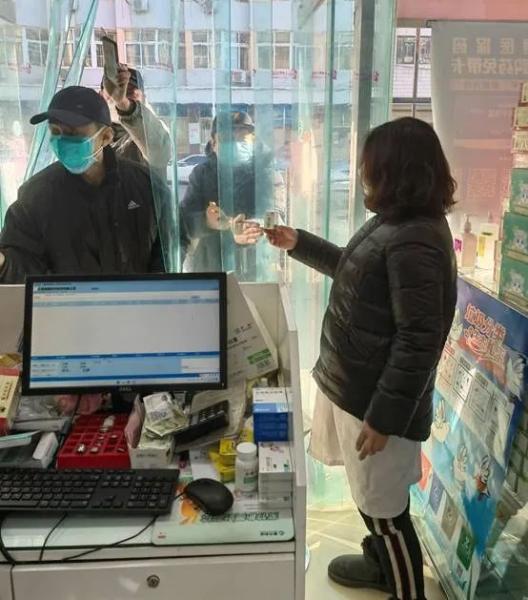 为了减少病毒传播,王云带着员工们把店里的布局重新做了调整,将收银台直接搬到了店铺门口的位置,像口罩、酒精、常用销量比较大的药品也全都摆在了门口显眼的位置,方便群众选购。