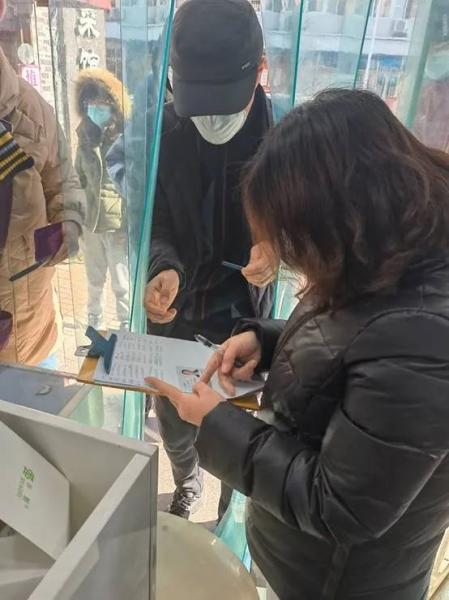 ▲王云给前来购买抗原的市民进行登记