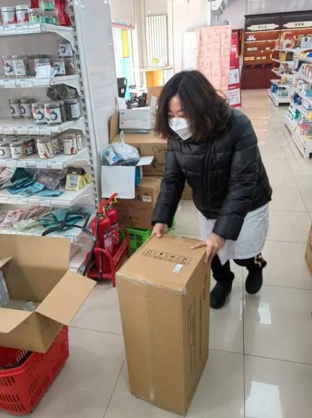 ▲王云给顾客新搬来一箱消毒湿巾