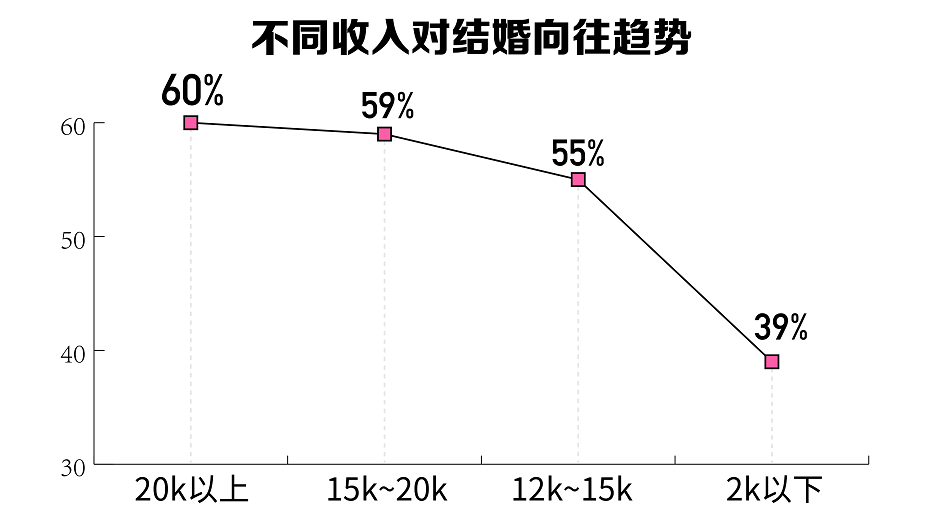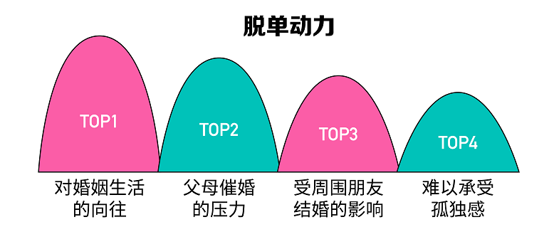 单身男女脱单的主要动力是对婚姻生活的向往(54.55%)和父母催婚的压力(45.52%),其次是受周围朋友结婚的影响、难以承受孤独感。此外,与刻板印象中“有钱就不需要结婚”的观点相反,超6成月收入2万以上的单身青年向往婚姻,渴望人生圆满。