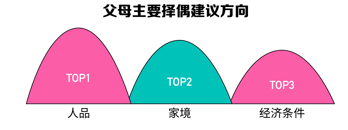 深入分析发现,父母对子女的择偶建议主要体现在对对方人品、家境及经济条件的意见,所以能否获得对方父母的认可,人品能否经得住考核是最关键的一步。
