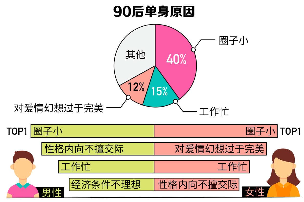 2、90后单身原因TOP3:圈子小、工作忙、对爱情幻想过于完美