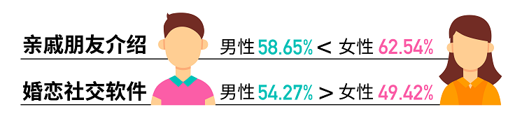 面对父母的择偶建议,50%的女性会受到父母的意见影响,仅25%的男性会受到影响,可见,女性比男性更“听妈妈的话”。另外,从地域来看,“本地人”青年更容易受到父母的影响。