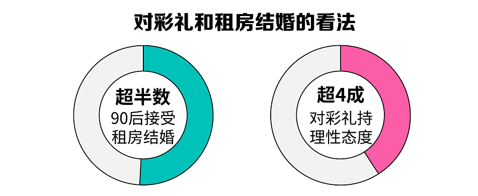针对“高房价”“高彩礼”等热门问题,超半数90后接受租房结婚,超4成90后对彩礼持理性态度,收入越高,越认为彩礼可有可无,新型婚恋观在慢慢崛起。
