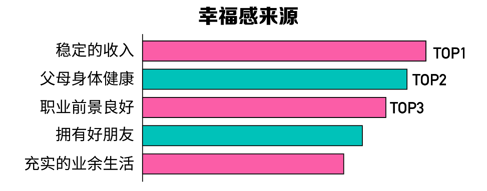 5、90后的主要幸福感来源:稳定收入、父母健康、职业前景良好
