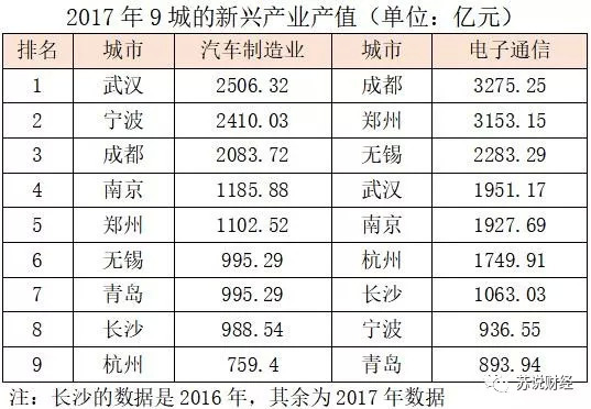 (3)杭州、青岛的新兴产业略逊一筹,被武汉、成都超越也是必然的事情。未来,也可能被无锡超越。