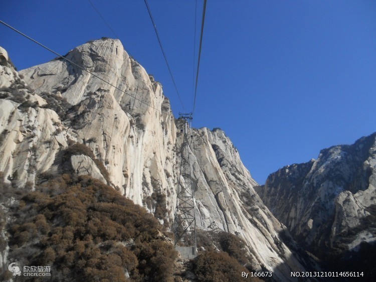 3、西上北下:看风景最多的游玩线路。我们此次爬华山就是此条线路,因为有孩子还有有老人。这条线路相对会比较省力,沿途风景也最多,价格适中,感觉适合大多数人的出行需求。相对北上西下,我更喜欢西上,因为我喜欢索道缓缓上升直入云霄的感觉。