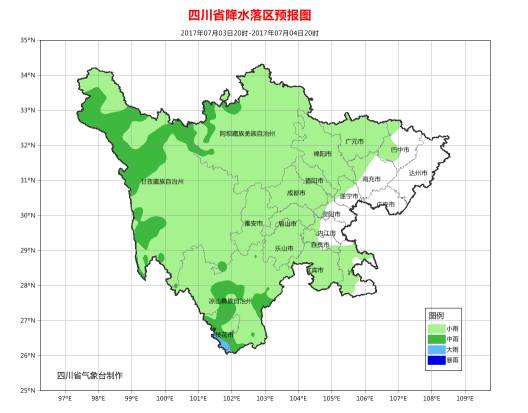四川省地质灾害气象风险预警图(2017年7月3日20时至2017年7月4日20时)