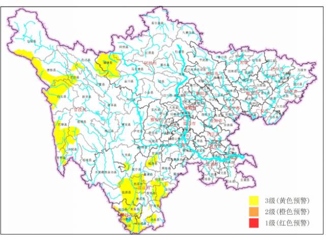 预警区域为:攀枝花市东区、西区、仁和区、米易县、盐边县,阿坝州阿坝县、壤塘县,甘孜州九龙县、甘孜县、新龙县、白玉县、理塘县、德格县、乡城县、石渠县、色达县、巴塘县、得荣县,凉山州西昌市、金阳县、昭觉县、美姑县、布拖县、普格县、宁南县、喜德县、会东县、越西县、会理县、盐源县、德昌县、木里县、甘洛县。