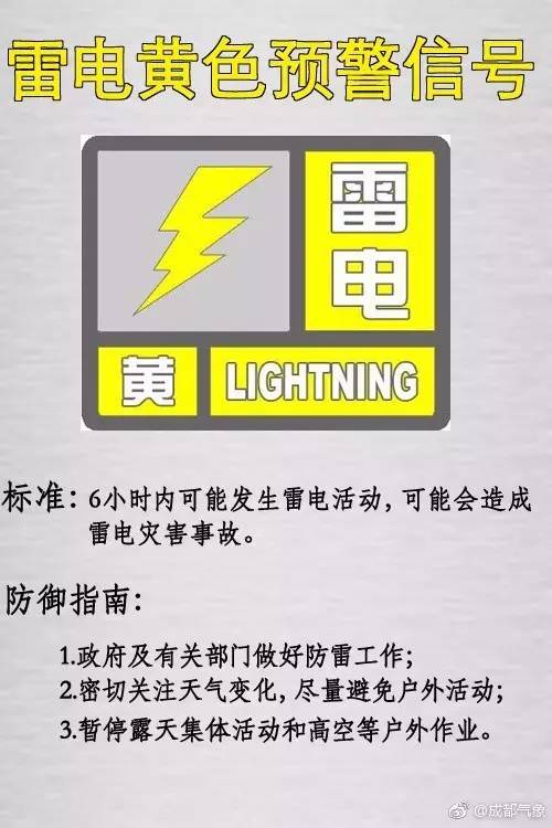 成都发布雷电黄色预警 未来6小时多地有雷电活动