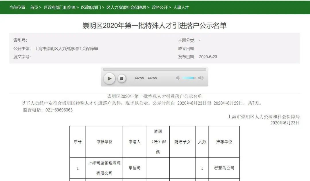 上海市崇明区人民政府网站公示的 2020 年第一批特殊人才引进落户名单显示,李佳琦排在第一位,这条消息瞬间把李佳琦送上了微博热搜第一名。