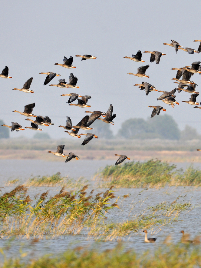 这份生态之美,美在大河之洲、群鸟翔集。“黄河落天走东海”,黄蓝交汇处,烟波浩渺,蔚为壮观。黄河三角洲鸟类达到373种,是“鸟中国宝”东方白鹳全球最大繁殖地,600多万只飞鸟啼鸣,汇成天地间的灵动音符。