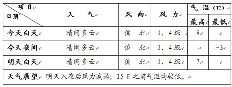 生活提示:今日风力较昨日明显减弱,但人体感觉依然寒冷,外出请注意防风保暖。