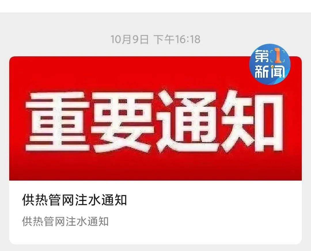 10月9日,宝鸡市热力公司发布供热管网注水通知。