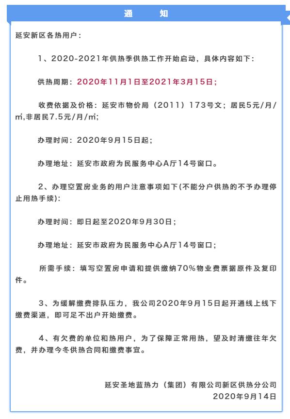 1、2020--2021年采暖季供暖时间为四个月,中途不允许停、开暖气,望周知。