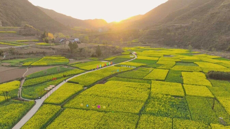 20.略阳县高山油菜花海游:徐家坪镇铁路风情小镇→徐家坪镇药木院村油菜花观赏体验区→西淮坝镇贤村油菜花观赏体验区