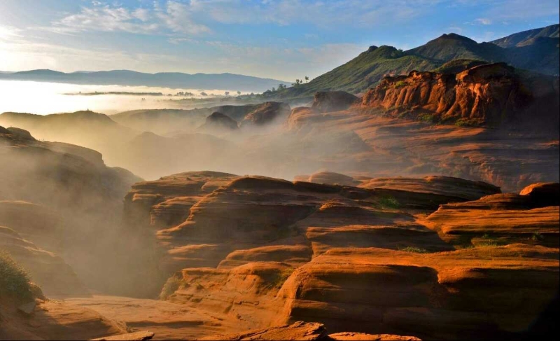 15.靖边县农事观景赏花游:王渠则镇王渠则村西涧丹林→龙洲镇龙一村(陕西魅力休闲乡村)波浪谷水上丹霞→红墩界镇白城则村统万城遗址公园