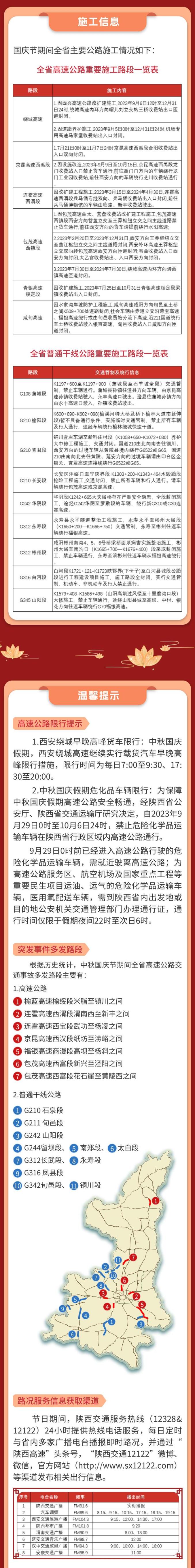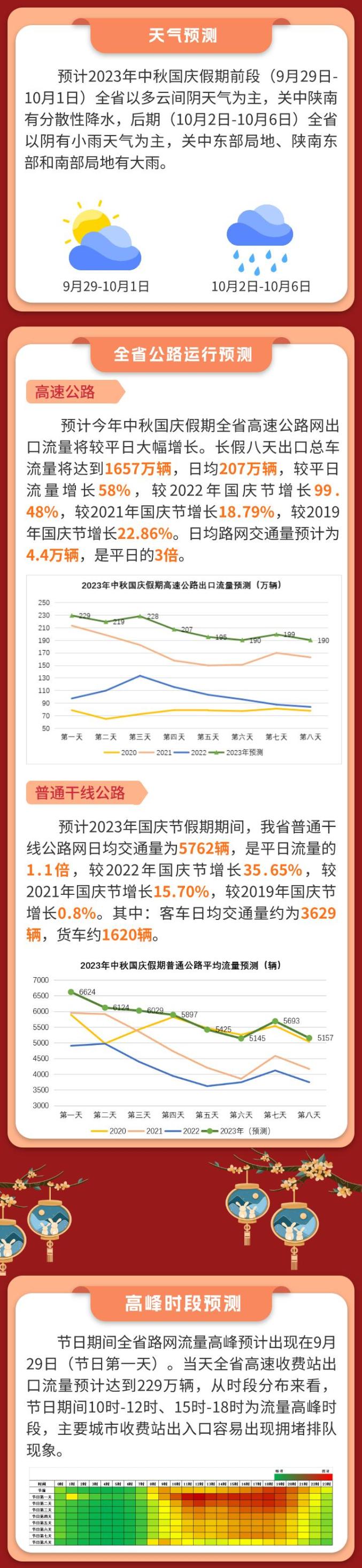 “中秋”及“国庆节”期间,全省多阴雨天气,降水影响范围广、降水期间能见度较低,陕北南部、关中、陕南累计雨量大;受多股弱冷空气影响,2日、4日有大风天气,全省气温持续降低,6日秦岭山区部分地方最低气温可降至0℃左右。经与省应急管理厅、农业农村厅、交通运输厅、文化与旅游厅、水利厅的综合分析研判,提出以下建议: