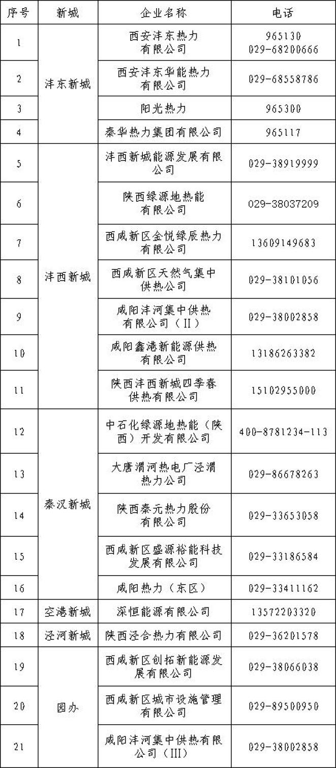 西咸新区集中供热企业