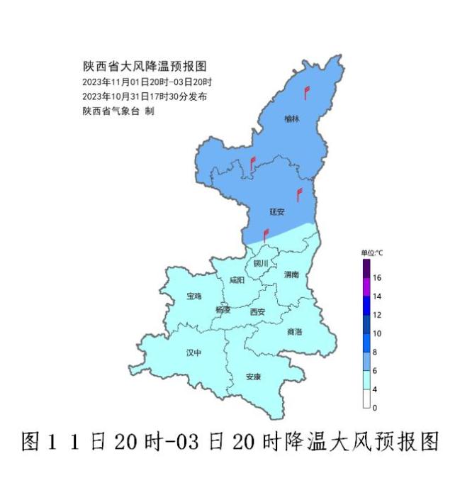 2-3日日平均气温陕北下降6~8℃,关中、陕南下降4~6℃。最低气温出现在3日凌晨,榆林0℃左右,延安西北部1~3℃,延安东南部、关中北部、秦巴山区4~6℃,关中南部、陕南7~11℃。3日最高气温陕北14~6℃,关中20~23℃,陕南14-22℃。陕北、关中北部有4~5级偏北风、阵风6~7级,陕北伴有扬沙或浮尘天气。