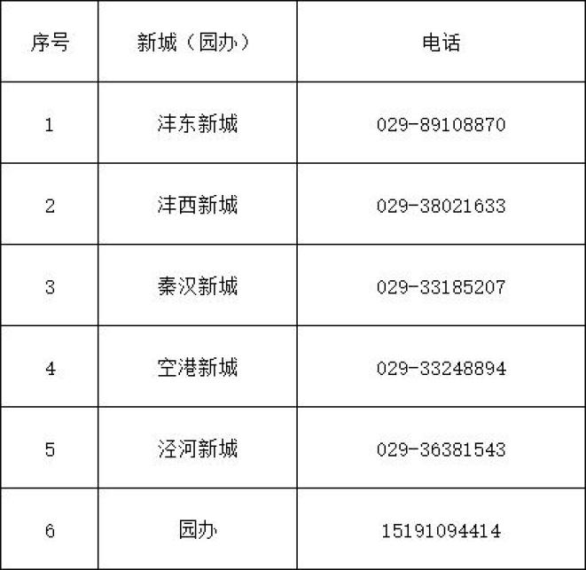 各新城(园办)咨询服务电话