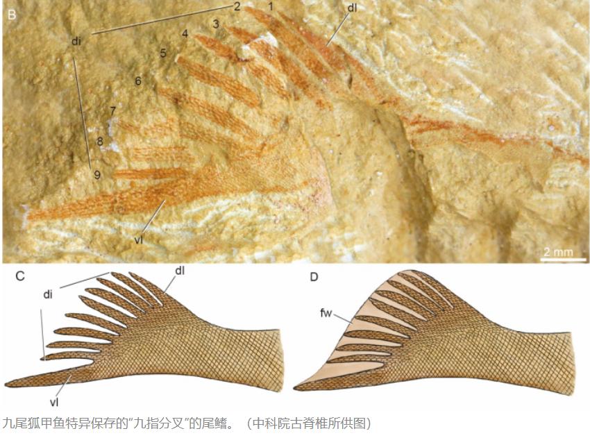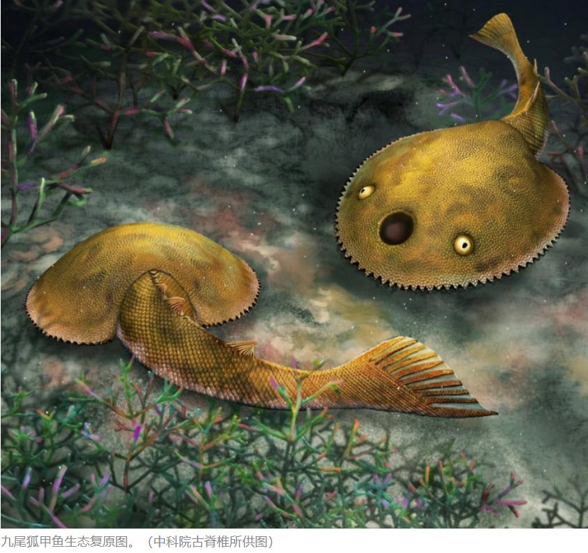 12)中国科学院在距今约4.1亿年前(早泥盆世布拉格期)广西古鱼类特异埋藏生物群中,发现了一个盔甲鱼类新属种“九尾狐甲鱼”。这是目前发现的世界首个完整保存尾鳍的盔甲鱼类化石。