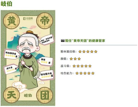 他是上古最有声望的医学家,尊称为“医圣”。据说,在被选为“黄帝天团”成员之前,岐伯在岐山医治百姓之时,当地百姓长者鹤发童颜,少者肌洁容美,可见上古“医圣”名不虚传。有不少网友已向笔者询问,是否能让“黄帝天团”的健康管家透露自己的独家秘方,造福“吃瓜网友”,让大家青春永驻。