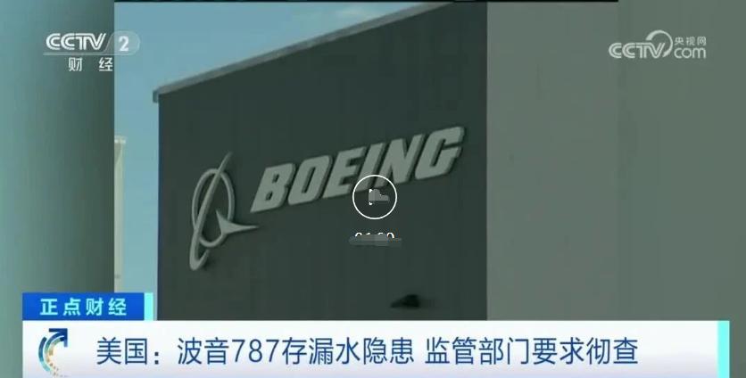 8)美国联邦航空管理局发现波音787客机存在机舱漏水安全隐患,泄漏的水流可能会损坏客机电子系统,美国联邦航空管理局要求对所有波音787型号客机进行彻查。