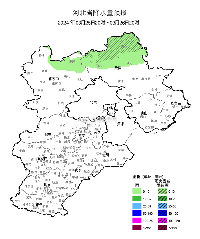 25日夜间到26日,张家口北部、承德北部多云转阴有小雨或雨夹雪,其他地区多云间晴。