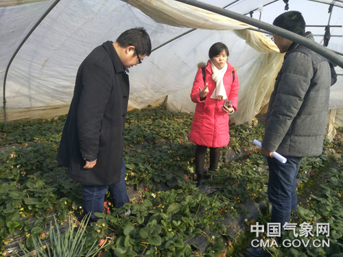 中国气象报通讯员张佩 高苹 徐敏 记者孙啸报道 2月6日,江苏省气象服务中心联合南京市气象局、南京市农委园艺技术推广站,到江宁区横溪镇草莓和西瓜设施种植基地,实地查看作物生长情况,了解低温雨雪过程对设施农业生产的影响,和种植户对气象服务的具体需求。
