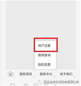 用户关注“威立雅哈尔滨热电有限公司”微信公众号后,点击“用户交费”