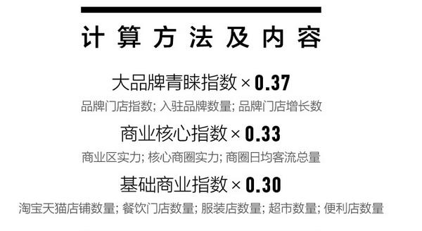 我们就先从权重最高的商业资源集聚度,来分析一下吧,这个指标的具体评选依据是这个��
