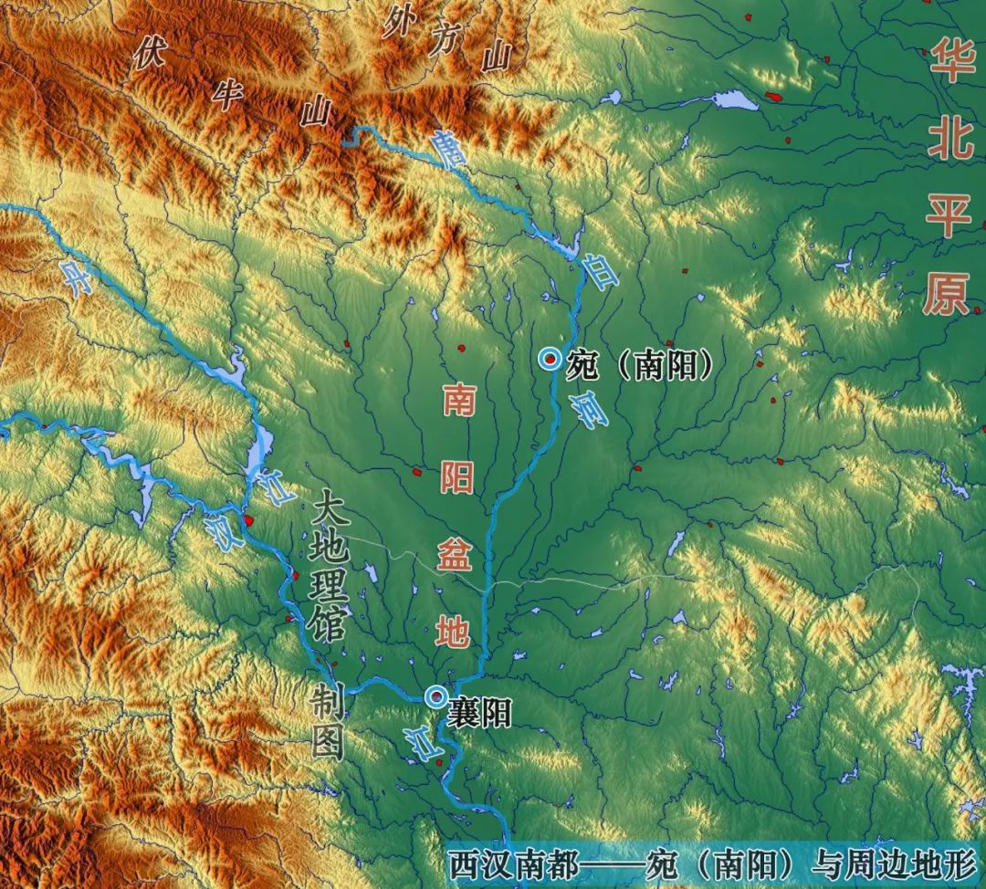 宛,也就是今南阳——它地处黄河流域和长江流域之间,西连秦地,东接吴楚,周围的山不高不低,唐白河的水不缓不急,烘托孕育出中间安详而平稳的南阳盆地。