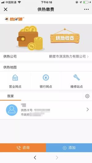 关注“鹤壁市淇滨热力有限公司”微信公众号。