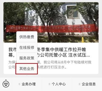 2.进入热力公司公众号后,点击左下角业务办理,选择供热缴费
