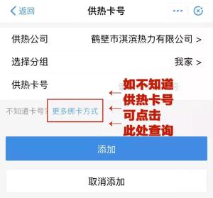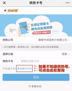 步骤一:确定并填写供热户号后,点击添加