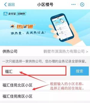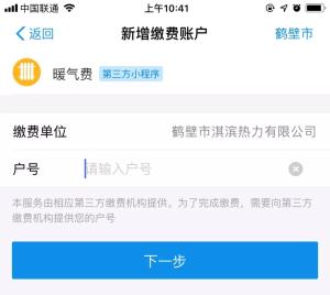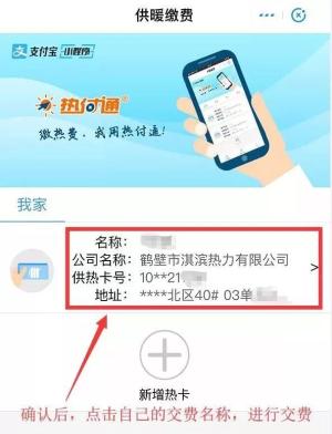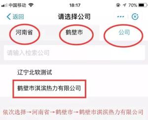 步骤二:打开“热付通”后,依次选择河南省-鹤壁市-鹤壁市淇滨热力有限公司