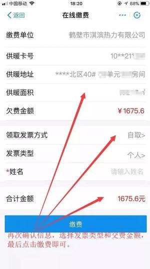 步骤三:进入缴费页面后,填写您的“供热户号”,进行缴费!