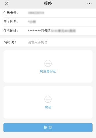上传房主身份证,房证后点击提交,即可办理报停业务。