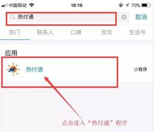 也可以打开支付宝输入“热付通”。