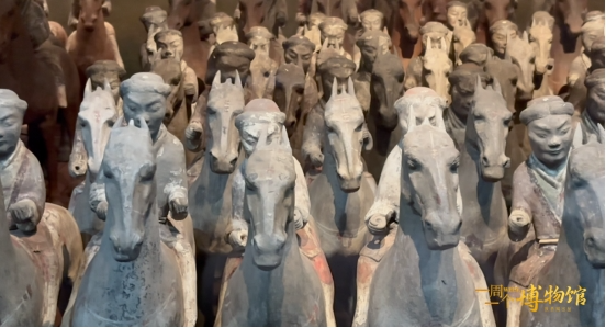 另一展厅的西汉彩绘兵马俑阵列堪称镇馆之宝。1965年出土于杨家湾汉墓的这批陶俑,早于秦始皇陵兵马俑九年发现。1965件步兵俑与583件骑兵俑组成严整的军阵,彩绘虽褪,但铠甲纹路清晰,弓弩手的英姿仍能窥见汉初军事的强盛。一尊指挥俑身披红袍,手执令旗,仿佛正号令千军万马。